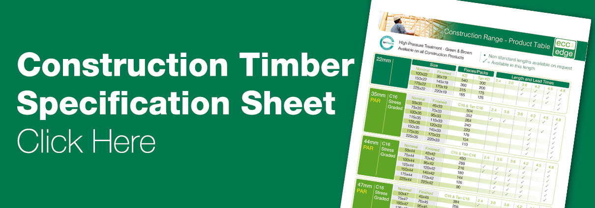 Our comprehensive carcassing range includes all timber components used in the construction of pitched roofs, agricultural buildings, studded partitions and numerous other building applications. All ECC construction timber is stress graded according to European standard for structural timber EN 14081 to C16 strength class.